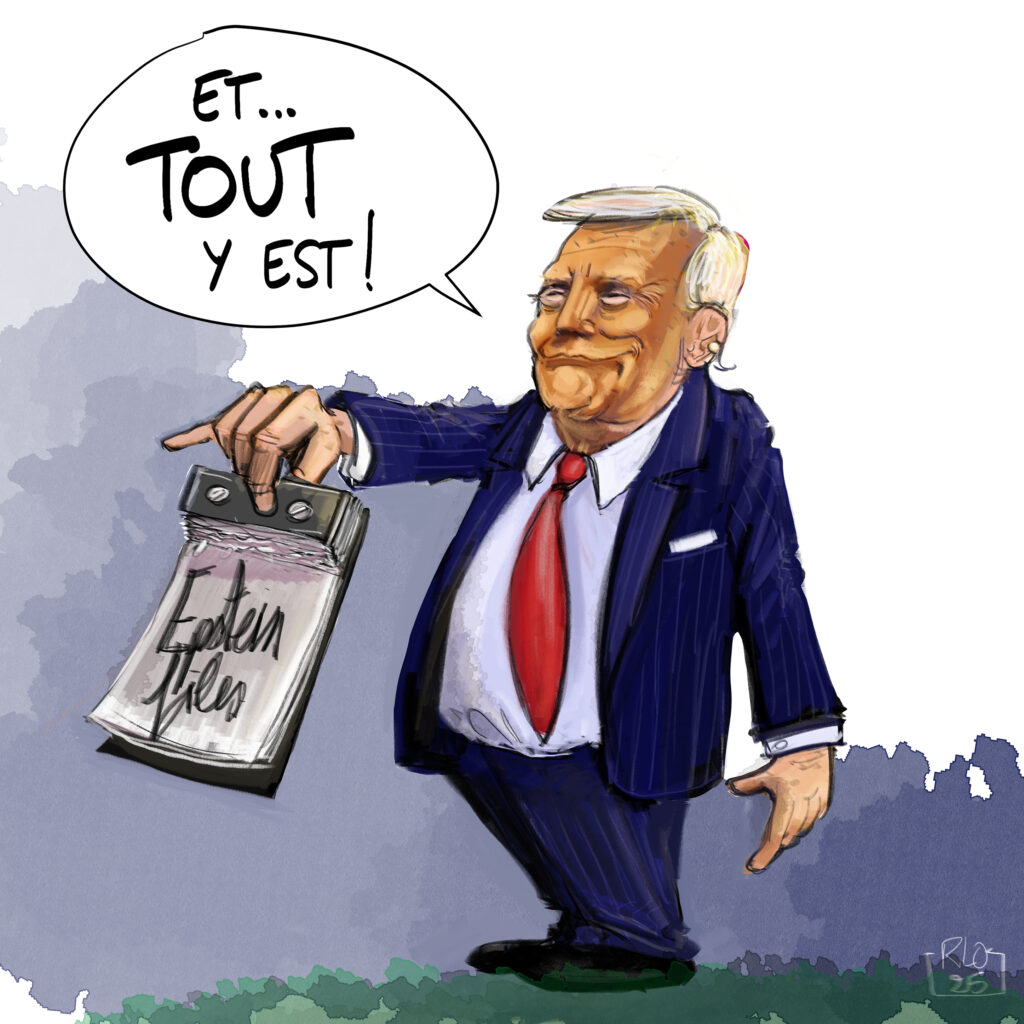 Epstein files : plus vrais que l’originalPar RLO / 20 décembre 2025 … il n’en manque pas une ligne ! Dessin original © RLO (2025) . Merci de ne pas utiliser sans autorisation. retrouvez moi sur X : @Humeurs_Rlo et sur insta : rlo_69 ou sur mon site : https://rlo-dessin.fr/