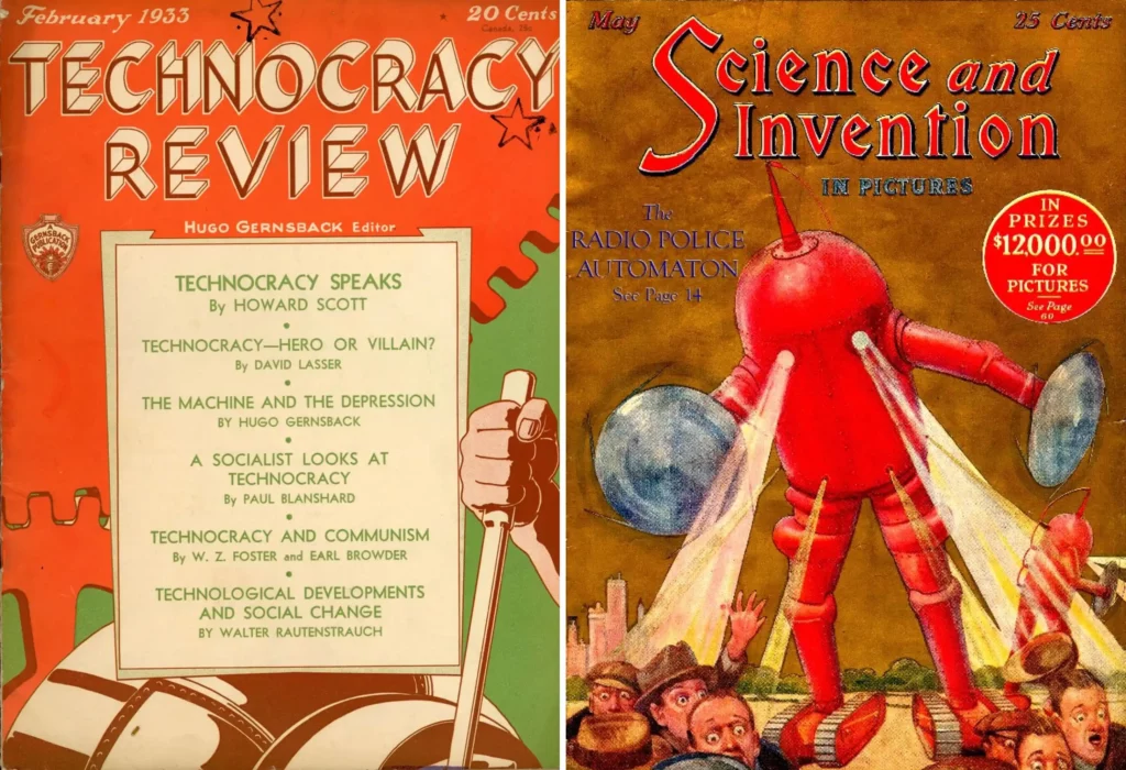 Au début du XXᵉ siècle, alors que le capitalisme industriel et le libéralisme semblaient incapables de résoudre les crises économiques et sociales, un nouveau courant démocratique intellectuel apparut en Amérique du Nord : le Mouvement technocratique . Ses partisans affirmaient que la société devait être dirigée non plus par des politiciens ou des financiers, mais par des ingénieurs, des scientifiques et des experts capables d’appliquer les principes de la rationalité technique à l’ensemble du fonctionnement social.