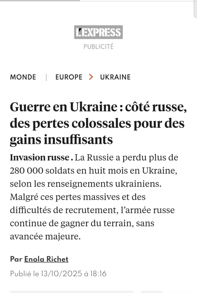 « Nous subissons peu de pertes, alors que celles de l’ennemi sont énormes ».
